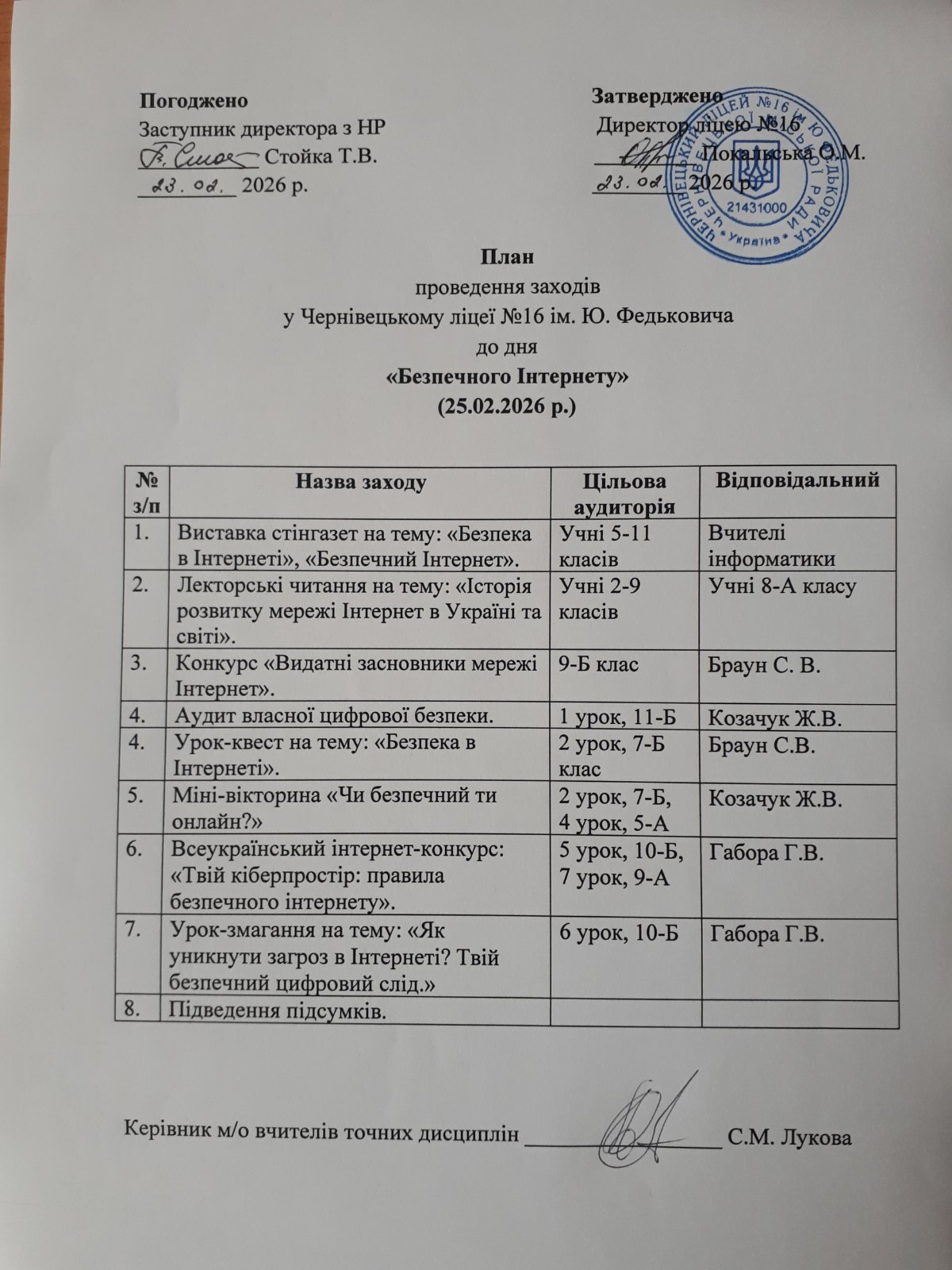 Проведені заходи стали важливим кроком у формуванні культури безпечного та відповідального користування Інтернетом серед учнів ліцею.